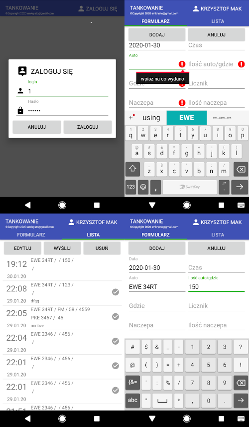 która umożliwia rejestrację tankowań paliwa. Aplikacja pozwala użytkownikowi na łatwe śledzenie
