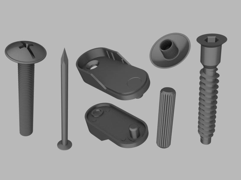 Przedstawiam narysowane w Blenderze okucia meblowe,