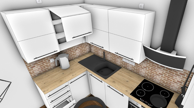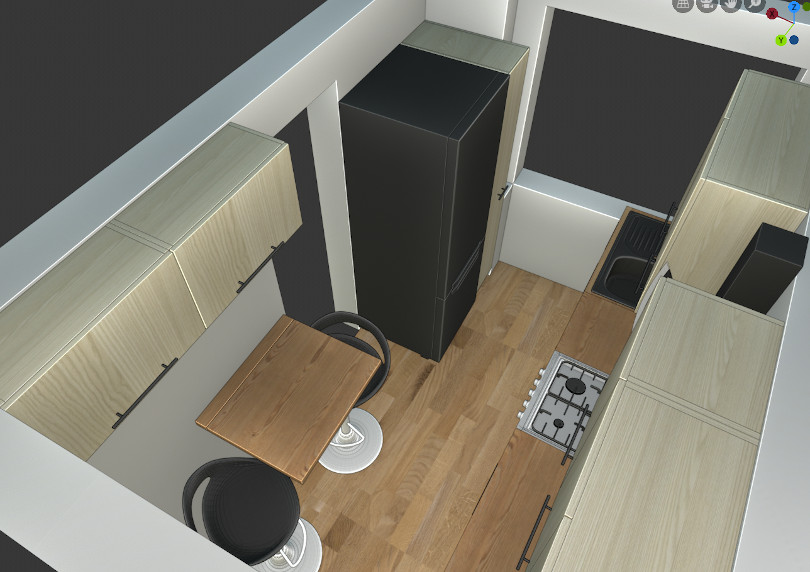 Przedstawiam kolejny projekt mebli kuchennych, tym razem dedykowany dla bardzo małego pomieszczenia. Projekt ten stanowi wyzwanie