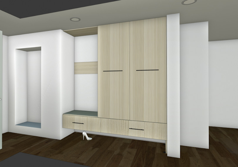 Przedstawiam aranżację sypialni, która uwzględnia zmieniony układu pomieszczenia po remoncie.